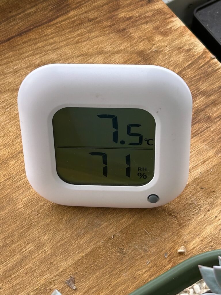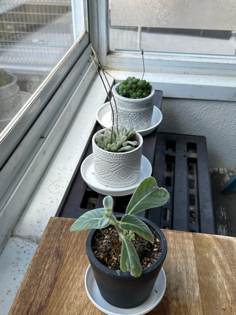 サイズ感はこんなかんじです。ハオルチアと同じくらい。育てている場所は、玄関の風除室の2階です